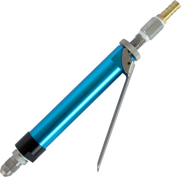 是將膠水直接倒入或者是包裝放入儲料壓力桶內,在壓力桶上接上出料管,出料管前端直接接上手動點膠閥,接通空氣壓縮機,將壓力桶內的料液直接輸送到手動點膠閥上出膠,操作人員按下閥門上的手柄,膠水就從膠閥前端出來。