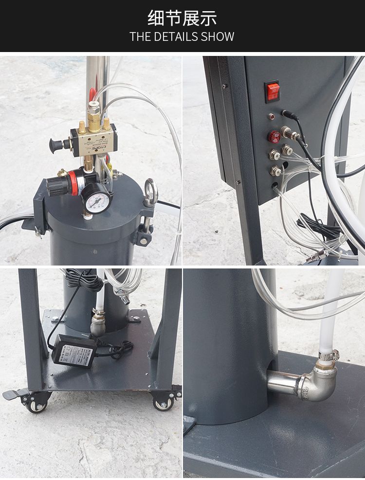 產品輸料口采用了大口徑鋼管送膠(市面上一般都使用普通鐵管,易生銹),輸膠軟管采用的是特殊定制進口